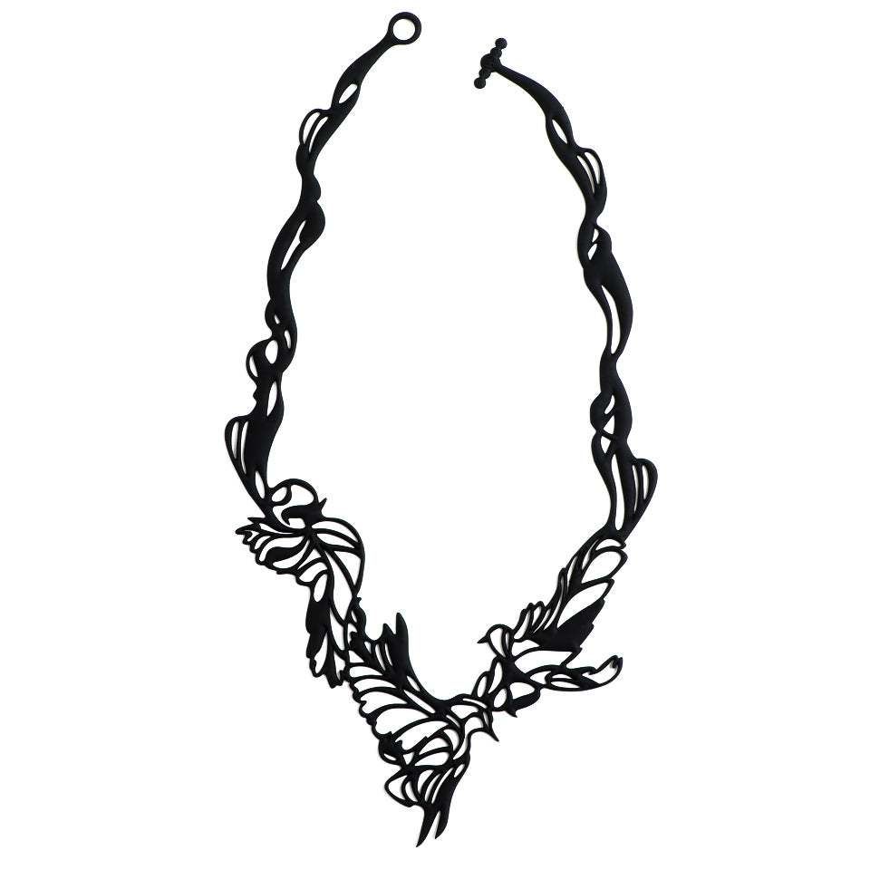 This striking jewelry is made of a proprietary blend of environmentally compatible materials that is synthesized in a “hand-cast” process to create the combination of textures and silky feel that is truly a pleasure to wear.
