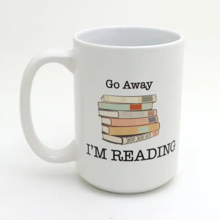 Books...because it's too peopley outside. Great gift for a reader- especially if they are introverted and prefer literary characters to the real ones! Back reads: Go away I'm Reading. This is a handmade ceramic mug crafted in New Jersey. This is a stoneware mug measures 3.5 x 4.5 inches. . Interior is a bright yellow. Kiln fired, lead free glazes. Holds 15 oz. Dishwasher and microwave safe.
