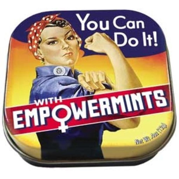 You can do it, ladies! And for those times you think you can't, Empowermints has got your back. These deliciously strong peppermints are formulated to give you an extra boost when the going gets rough and your confidence sags. Just pop one or two Empowermints into your mouth, roll up your sleeves and take care of business. Empowermints come in an inspiring reusable tin and work just as well on men, too.