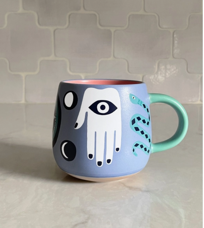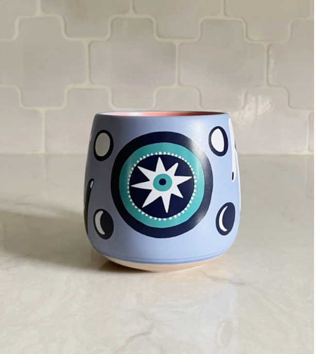 Our ceramic mugs feature our full-color, wraparound graphics on a single-walled ceramic base. We designed our vessel to be bowl shaped, keeping your drinks warm til the last drop! Coordinating handle and interior glazing keeps these as fun as they are functional- the perfect ray of sunshine to brighten your kitchen. Packaged in a pretty gift box, these make a delightful hostess or housewarming gift.