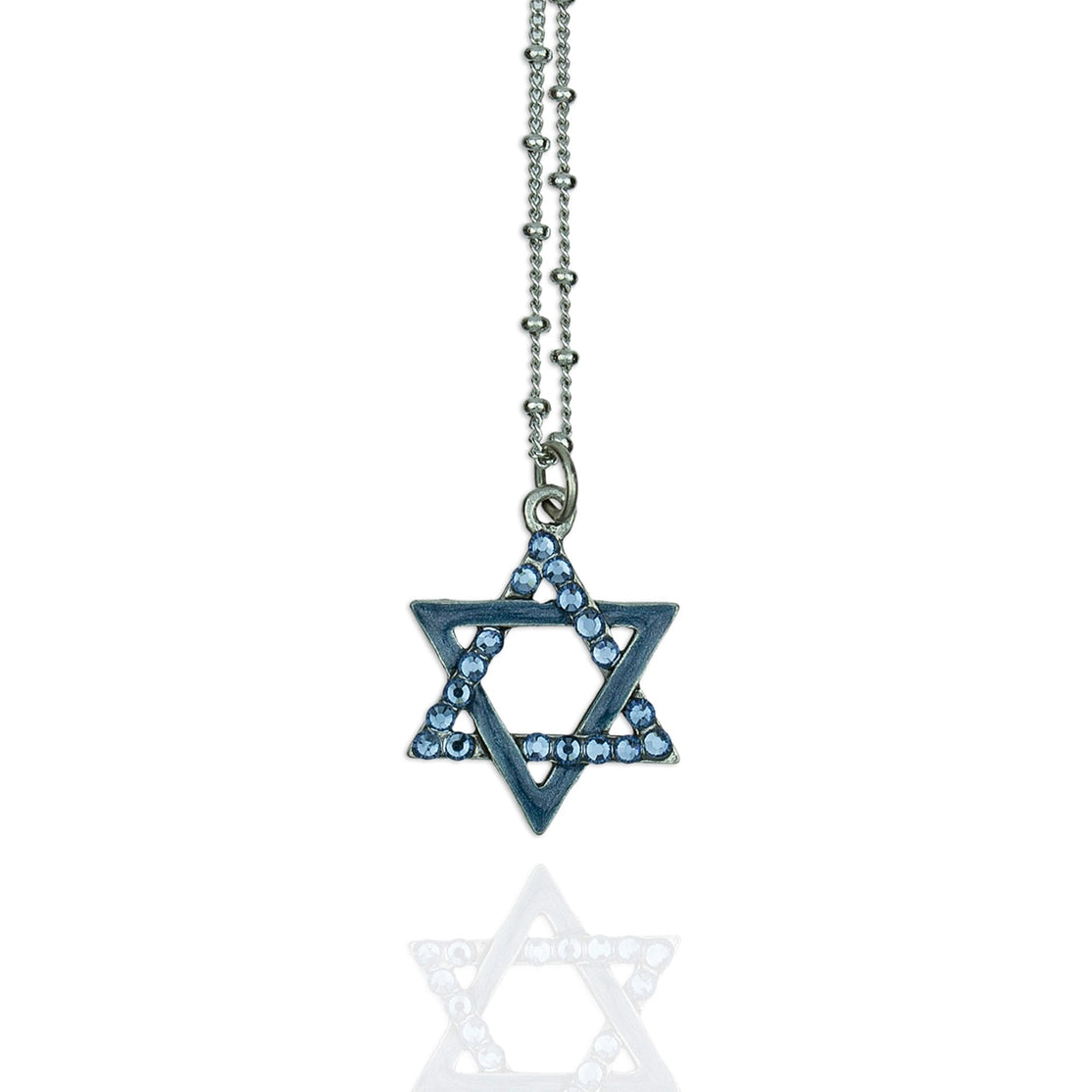 Sparkle and faith combine in this beautiful necklace. Featuring a mixture of hand enamel and crystals, this Star of David pendant brings the perfect balance to any ensemble.