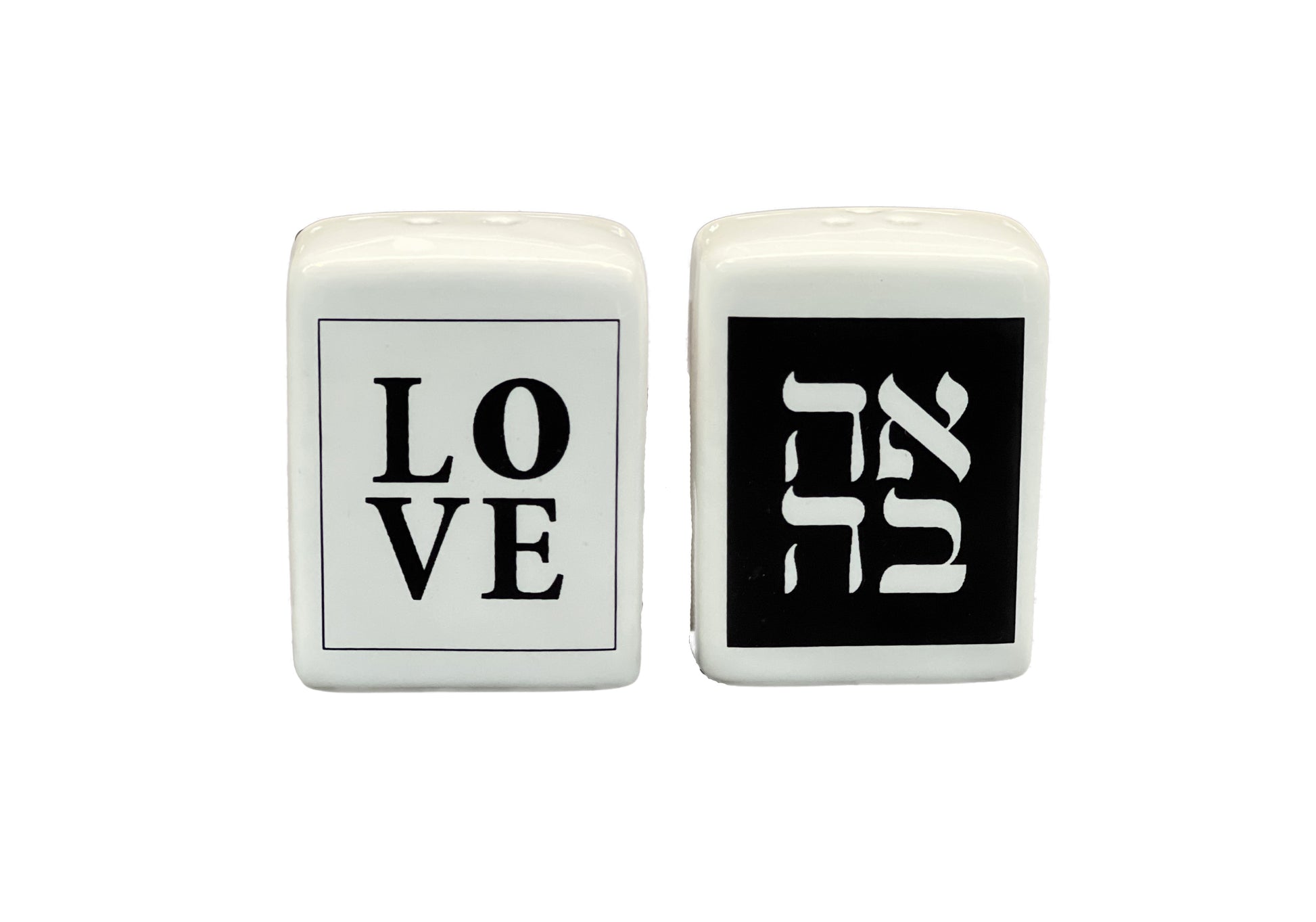 Love Salt and Pepper Shakers with Hebrew, Ahava