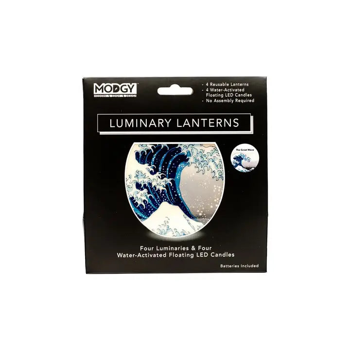 Modgy Luminary Lanterns set the mood in any space with the addition of water and water-activated, floating LED candles. These durable, plastic luminaries feature modern, graphic designs and are suitable for indoor and outdoor use.