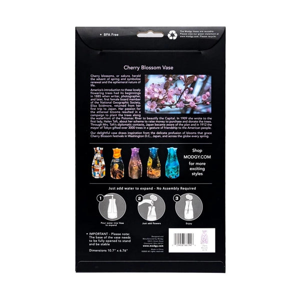 Modgy Expandable Flower Vases do everything a glass vase does except collect dust, chip or break. Available in a variety of designs, Modgy expandable vases are durable and stable enough to hold a flower bouquet. Dimensions: 10.25" X 6.25" Materials: BPA free plastic vase.