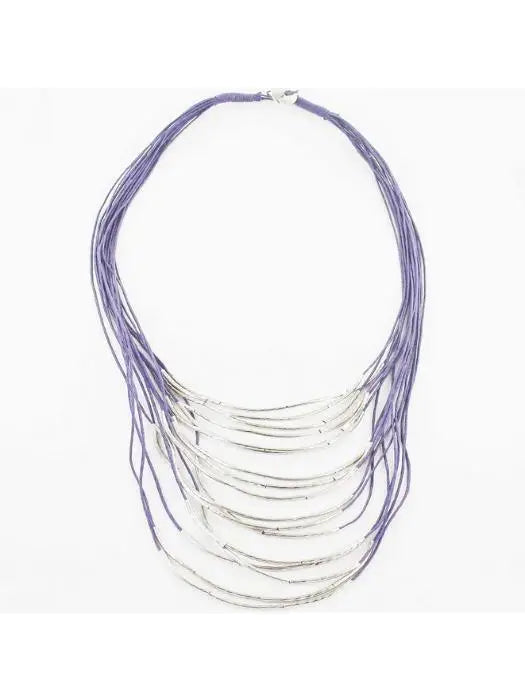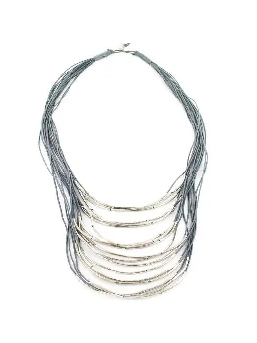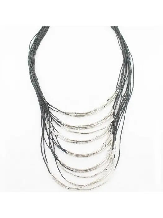 Add a modern elegance to your outfit with this gorgeous, tiered necklace. It features several strands and closes with a looped clasp.