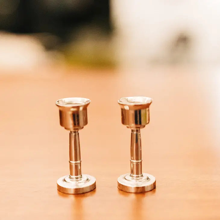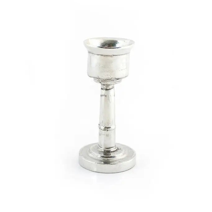 Each individual pewter taper holder is lovingly hand crafted using traditional techniques by a small team of artisans based just outside the heart of Cape Town. Only 100% lead free pewter is used to create these beautiful taper candle holders. The product is also approved by the South African Bureau of Standards (SABS) for quality assurance. This thin silver holder stands approximately 3" high. The holders are sold as singles. A great way to display and burn your Shabbat candles!