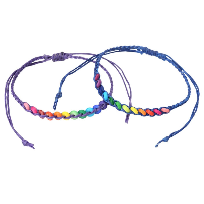 This colorful braided bracelet is perfect for adding a pop of personality to your outfit. Adorned with rainbow beads, its smooth, waxed string is adjustable in size and sits securely once tightened.