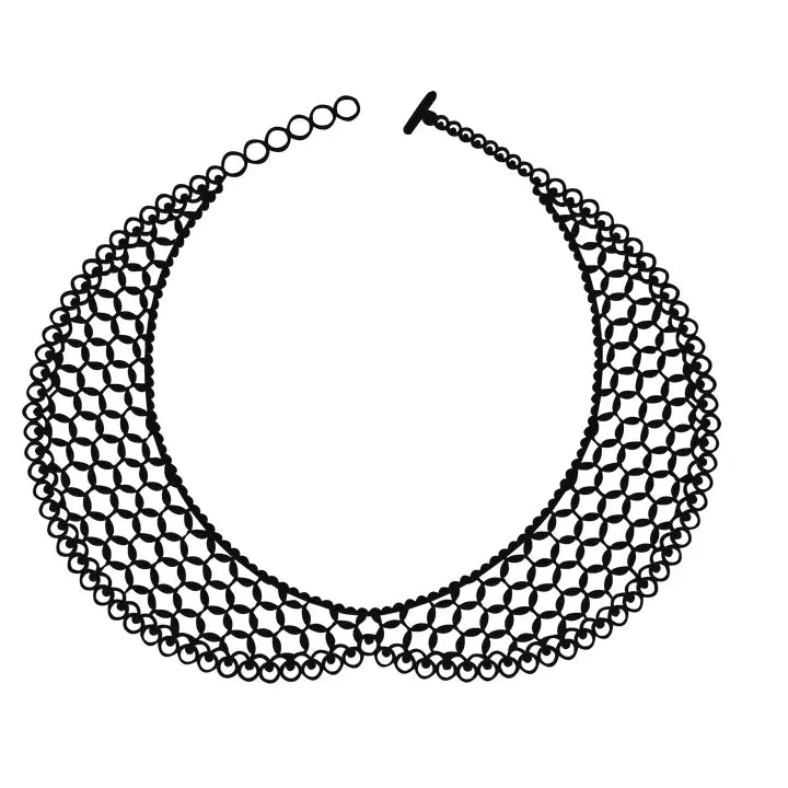 This uniquely textured necklace recalls Ruth Bader Ginsberg's iconic beaded collars. Made using a proprietary blend of environmentally compatible materials, it is “hand-cast” to create a flexible texture with a silky feel that is truly a pleasure to wear.