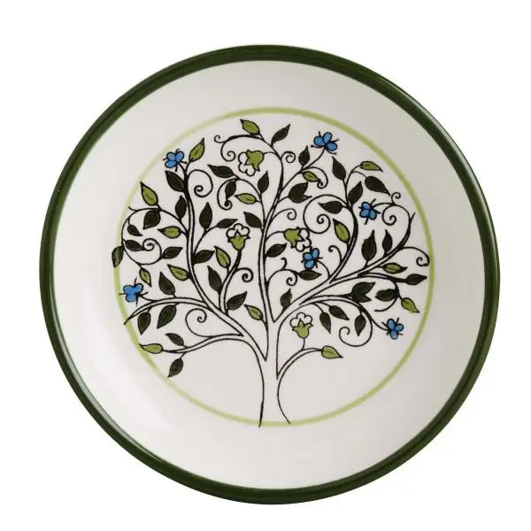 Birds and blossoms express the bounty of a tree of life. Skillfully hand-painted design adds grace and beauty to this small dish, produced by artisans living and working in Hebron. Handmade by artisans of Hebron Glass & Ceramic Factory. This family business was founded in 1890.